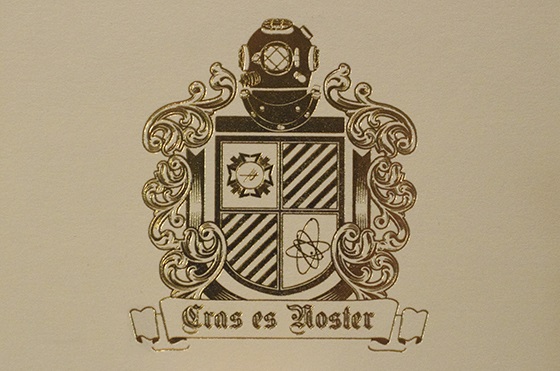 Notice the plus ultra symbol in the upper left hand corner and the creed Cras es Noster (the future is ours)